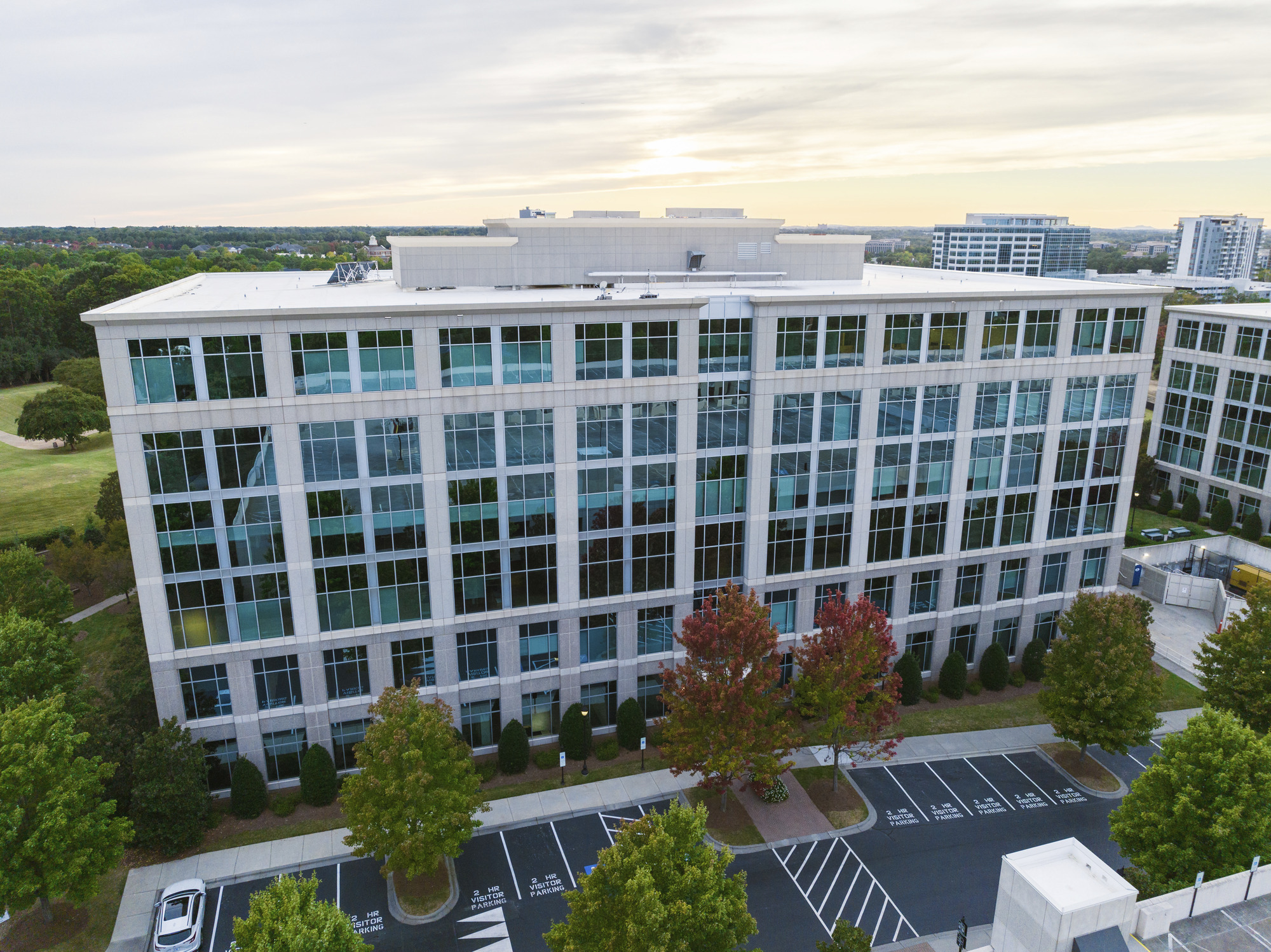 If you’re looking for office space with amenities in Charlotte, the Calhoun Building has it all. The Calhoun Building is a six-story office space at Ballantyne in Charlotte, overlooking the 100-acre community park and is well-situated for direct access to The Bowl at BallantyneTM dining, retail and entertainment district through the new Lower Avenue roadway. Customers can also enjoy access to outdoor cornhole boards in front of the respective parking deck, and on-site rotating food trucks among other fantastic amenities.
